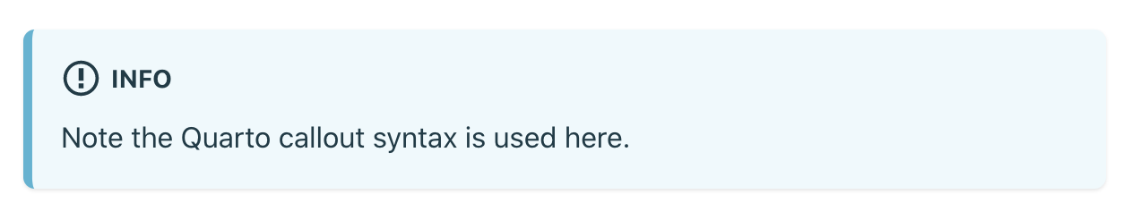 Note the Quarto callout syntax is used here. :::