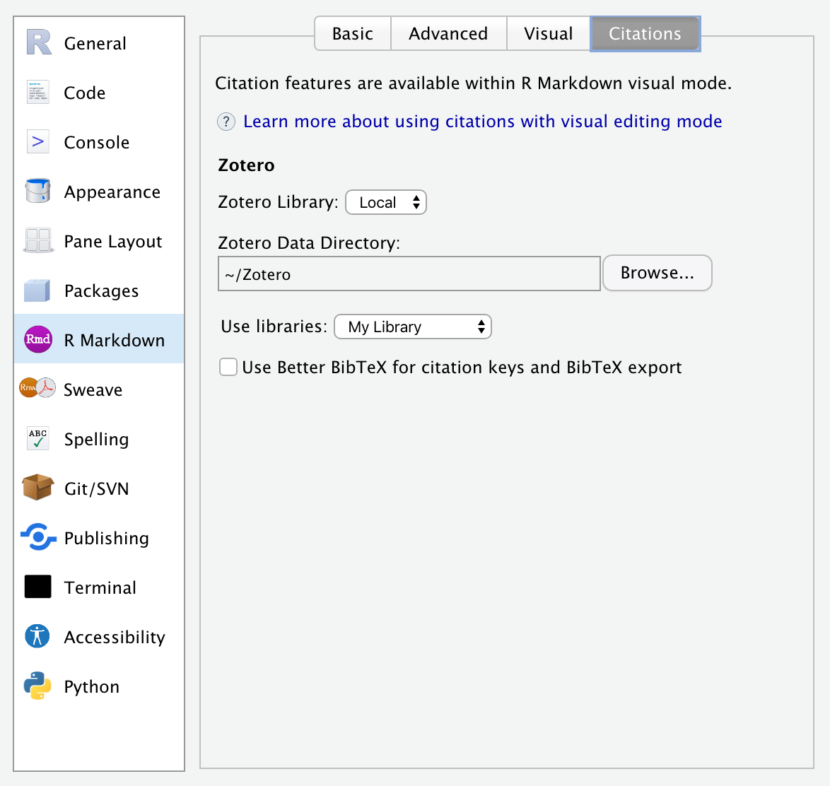 Use Better BibTeX for citation keys and BibTeX export. | Optionally use Better BibTeX to generate citation keys and export BibTeX from Zotero (this option appears only if Better BibTeX is installed). |